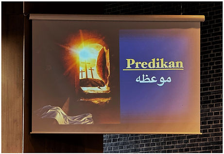 Påskdagens gudstjänst - liksom hela påskveckans gudstjänster - firade Hammarbykyrkans svenska och persiska församling tillsammans. "Persiska" Annahita Parsan ledde gudstjånsten och ropade ut "Kristus är uppstånden", "Svenska" Lena Harris predikade om den uppståndne och vad han gjort och gör för oss.. Ett svensk/persiskt lovsångsteam med Christer Boij vid pianot stod för den rikliga lovsången. Efter gudstjänsten var det gemensamt kyrkfika i Hammarbysalen.